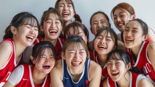 ai画像 神奈川県 女子バスケ部 集合写真 #部活 #運動部 #バスケ部 #バスケットボール部 #AI美少女